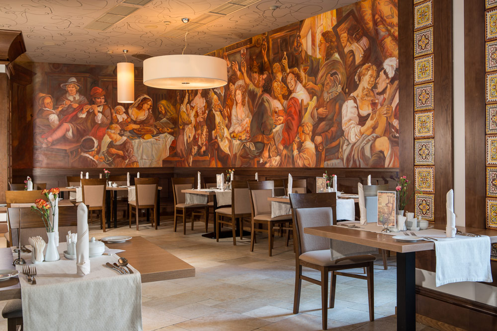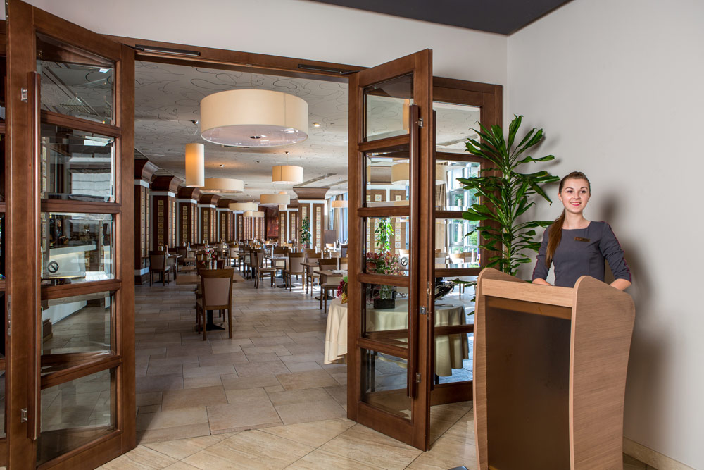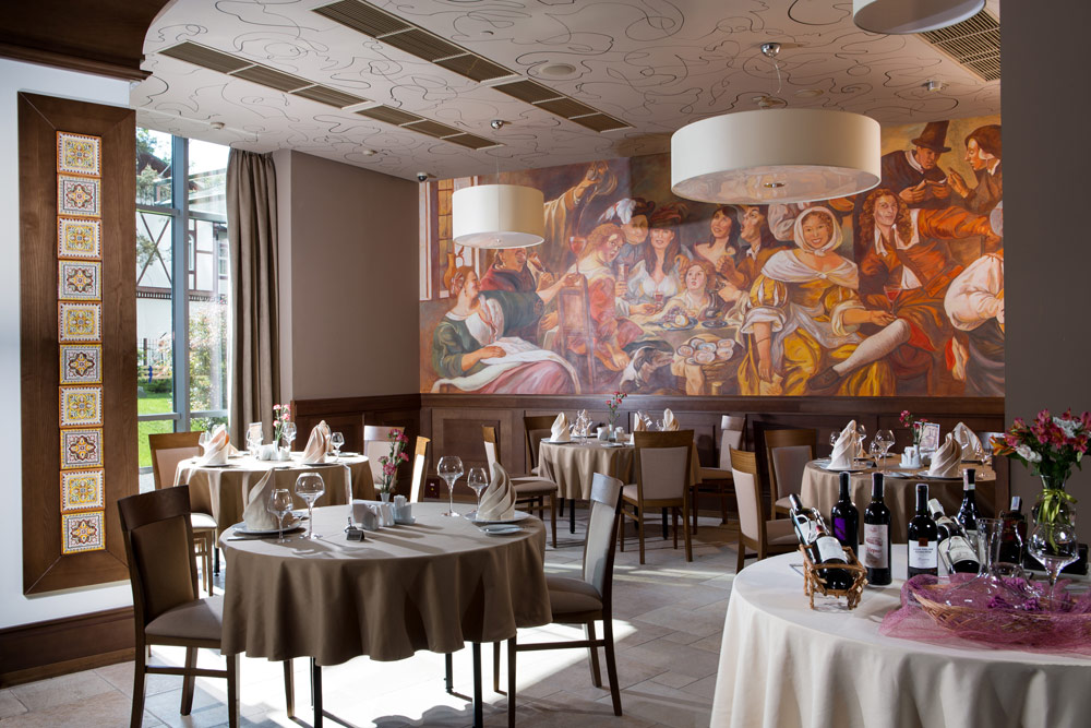 На 1-му поверсі відвідувачів зустрічає L`escale Restaurant & Bar. Тут можна поснідати за типом «шведський стіл», смачно пообідати і повечеряти. Ви можете вибрати страви з готового меню або ж попередньо замовити на кухні щось інше за смаком. Більш вишукана і оригінальна кухня чекає відвідувачів на 9-му поверсі санаторію. Ресторан Bellini`s Piano Bar & Grill пропонує фьюжн-кухню.